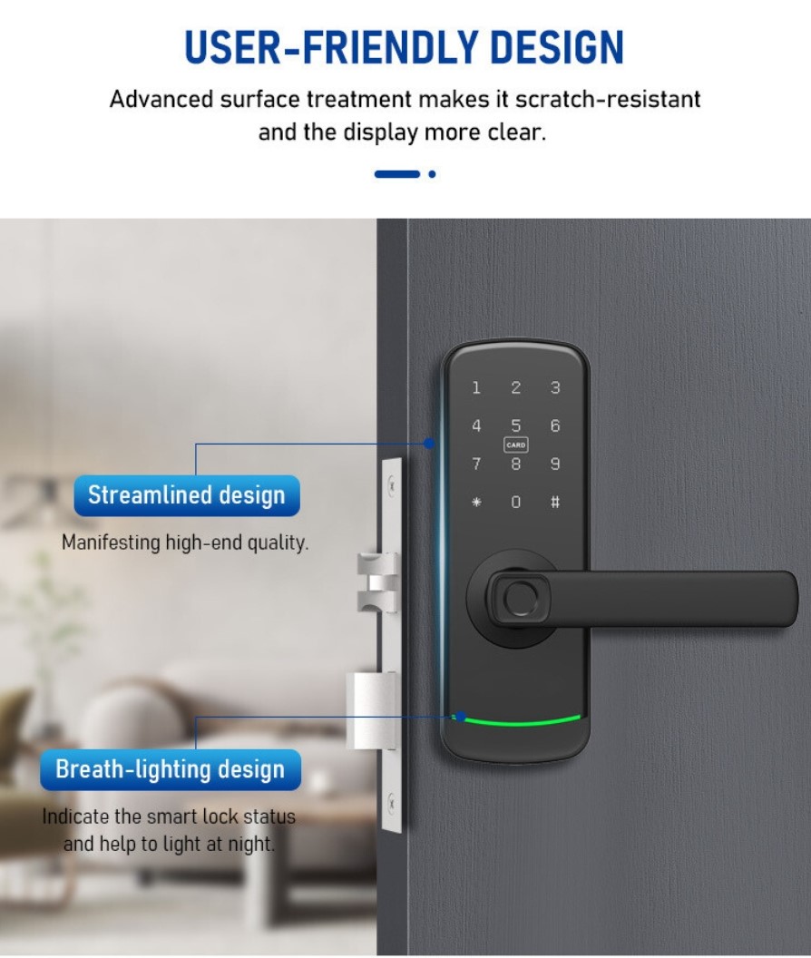 - Six Unlocking Modes: Fingerprint, Password, RFID Card, App, Mechanical Key, BLE/WiFi Access.